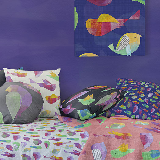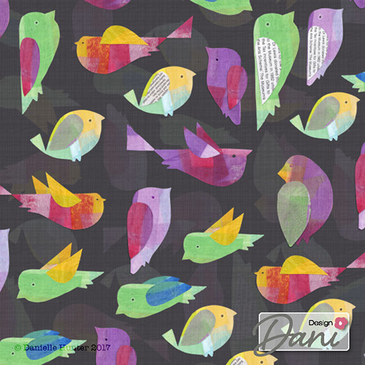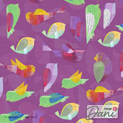 These simple fun birds hatched from sheets of glued tissue paper, hand cut and then finished in photoshop. can see these as gift wrap, cards and even bedding for Tweens.