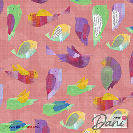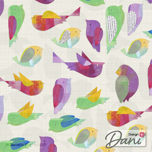 These simple fun birds hatched from sheets of glued tissue paper, hand cut and then finished in photoshop. can see these as gift wrap, cards and even bedding for tweens.